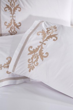 Adelina Embroidery King Size Duvet Cover Set 6 pcs, Duvet Cover 200x220, Sheet 240x260, Double Size, Cream Color