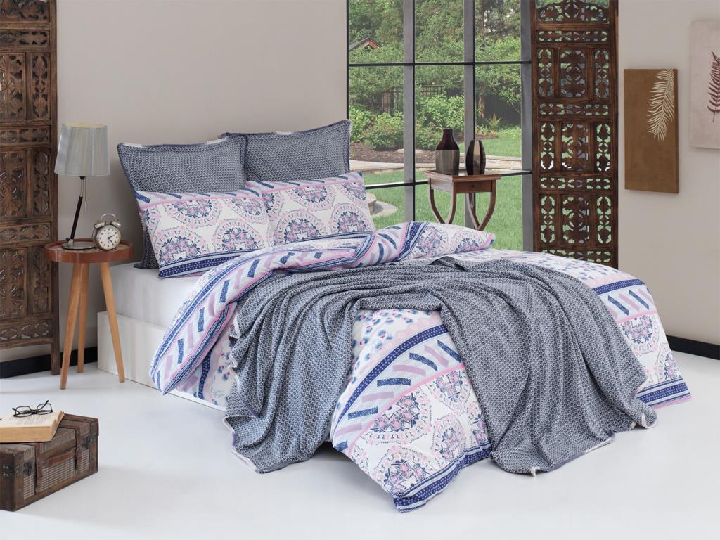 Akari Bedding Set 7 Pcs, Bedspread 200x230, Duvet Cover 200x220, Bed Sheet, Double Size, Self Patterned, Daily use