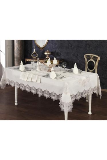 Asel Dinner Set 26 pcs, Tablecloth Rectangle, Runner, Placemat, Cream