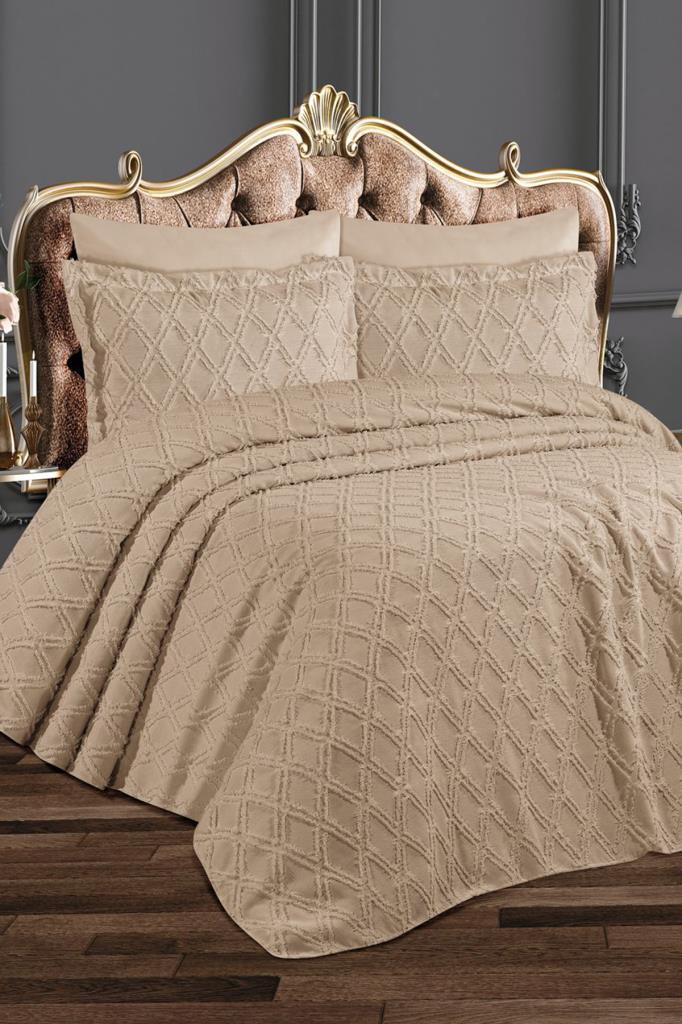Azra King Bedspread Set 3pcs, Coverlet 240x260, Pillowcase 50x70, Double Size, King Size Beige