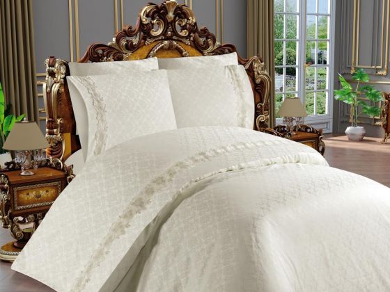 Beyza French Guipure Jacquard Satin Duvet Cover Set