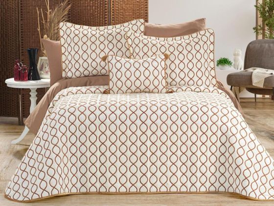 Brillance Quilted Bedding Set 4 Pcs, Bedspread 250x250, Pillowcase 50x70, Double Size, Velvet, Wedding, Cream Gold