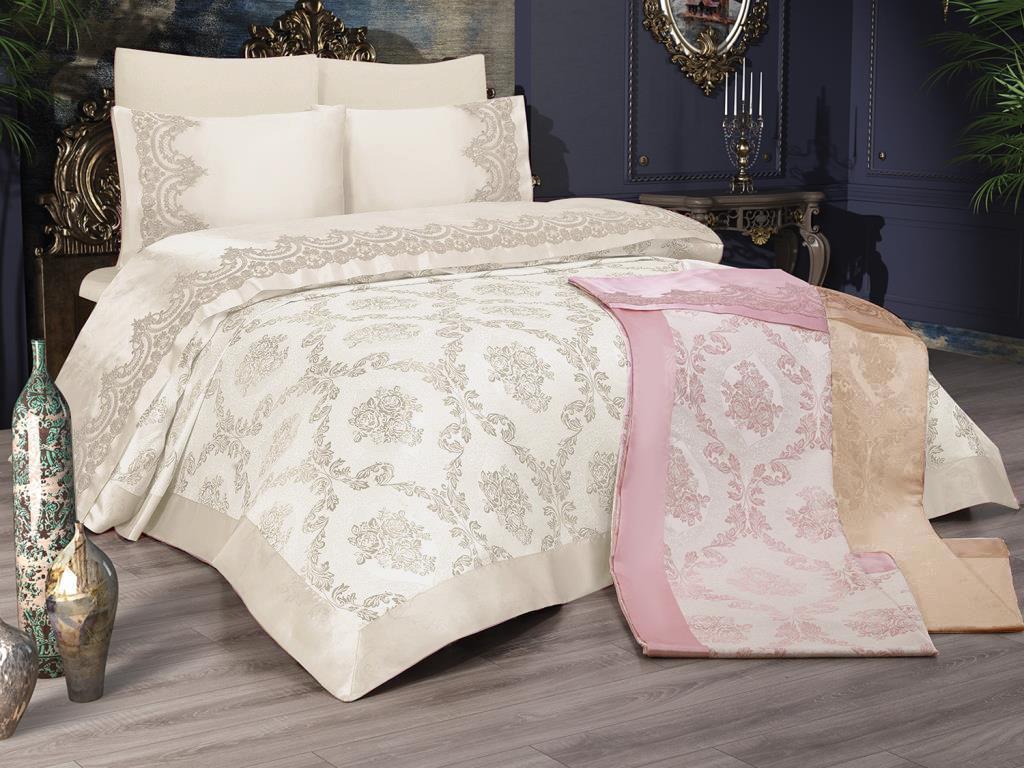 Cana Bedspread Set 6pcs, Coverlet 240x250, Sheet 240x250, Pillowcase 50x70, Double Size, Cream