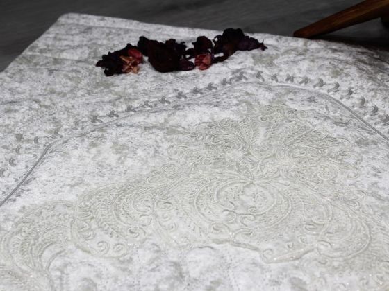 Land of Dowry French Guipure Lisa Velvet Prayer Rug Cream Cream