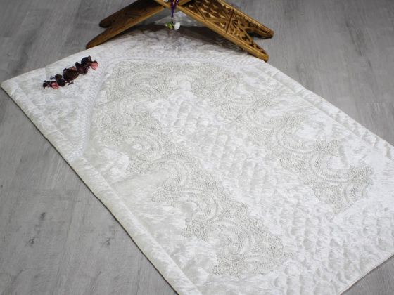 Land of Dowry French Guipure Lisa Velvet Prayer Rug Cream Silver