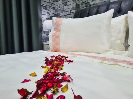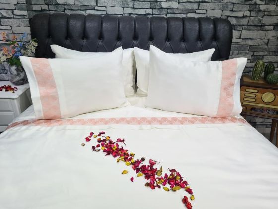 Cotton It is a Duvet Cover Set Consisting of 6 Pieces Sewed with Vivid Color Guipures and Embroidery on Satin Fabric.
