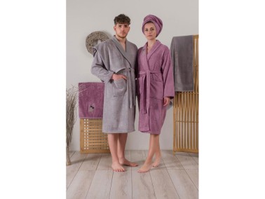 Cottonbox Bamboo 3D Embroidered Family Bathrobe Set Violet Plum Gray