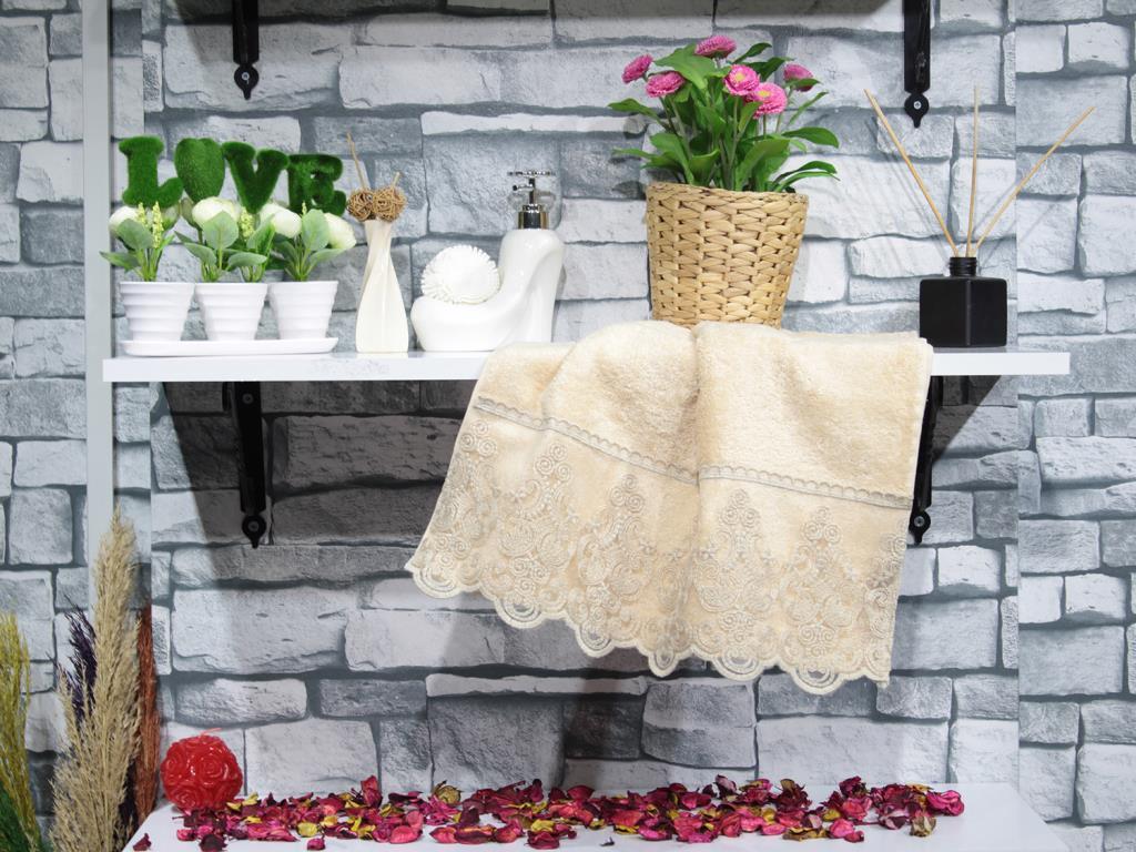 Hand Face Towel 50x90 cm 1 pieceThe Unique Harmony of French Lace and Cotton Towel.