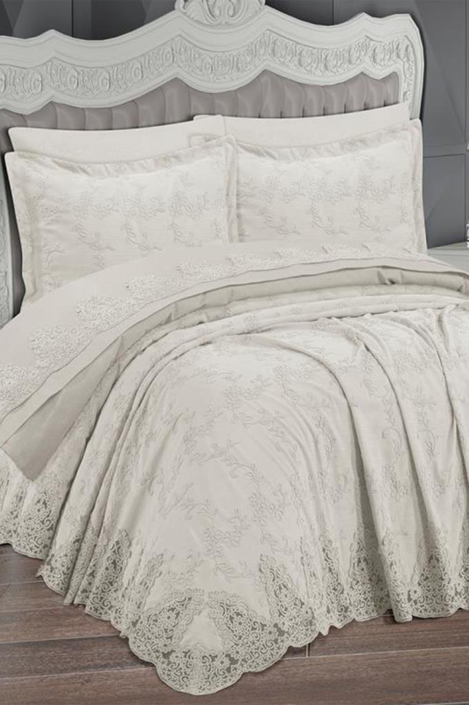 Ege Bedspread Set 6pcs, Coverlet 250x250,Sheet 240x250, Double Size, Cream