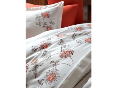 Eliz Embroidered Cotton Satin Duvet Cover Set Cream Red