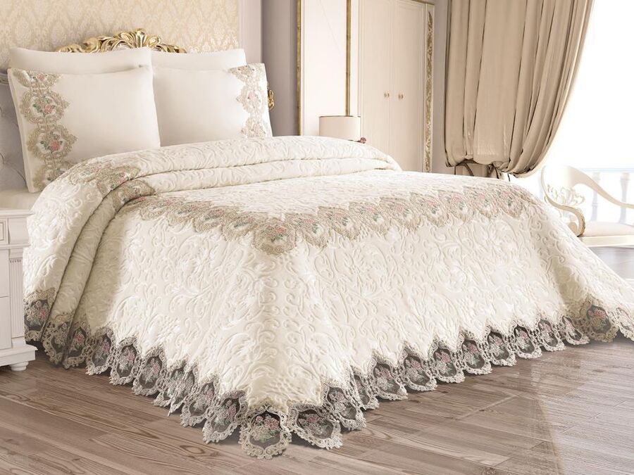 Lacy Pillowcase: 50x70 cm 2 pcsA Special Design Was Created by Sewing French Lace 3 Corners to Blanket Skirts.