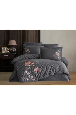 Impero Embroidered 100% Cotton Sateen, Duvet Cover Set, Duvet Cover 200x220, Sheet 240x260, Double Size, Full Size Antrachite