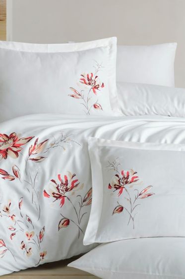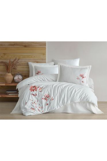 Impero Embroidered 100% Cotton Sateen, Duvet Cover Set, Duvet Cover 200x220, Sheet 240x260, Double Size, Full Size Cream