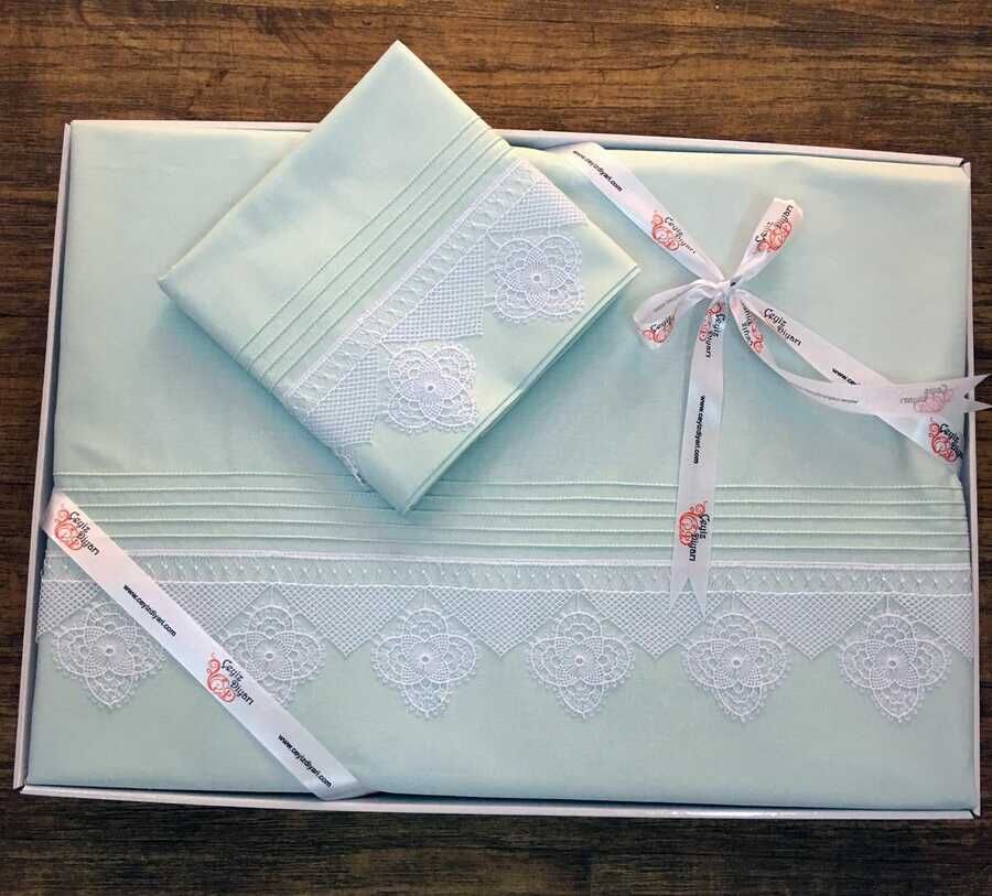 Special Production Needle Lace Duvet Cover Set. Brand: Ceyizdiyari. Duvet Cover: 200x225cm Bed Sheet: 240x260 cm, PillowCase: 50x70 cm 2pcs, Plain pillowcase: 50x70cm 2 pcs. 100% Cotton Fabrics. A special design with French guipure stitched has been created on the duvet cover..Washing instructions: Wash the product with machine or mannual at max 40 degrees.Iron with warm iron.Do not use bleach and chemical stain remover - keep dark colors as separate as possible while washing -Do not keep wet.Can be dried in drying machine.