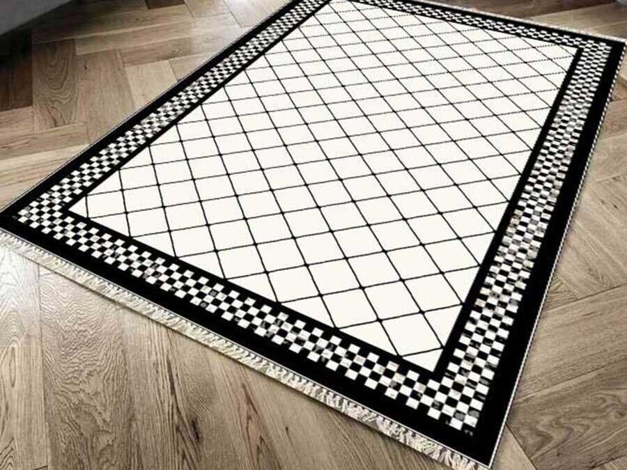 Non-Slip Base Digital Print Velvet Carpet Dama White 80x150 cm