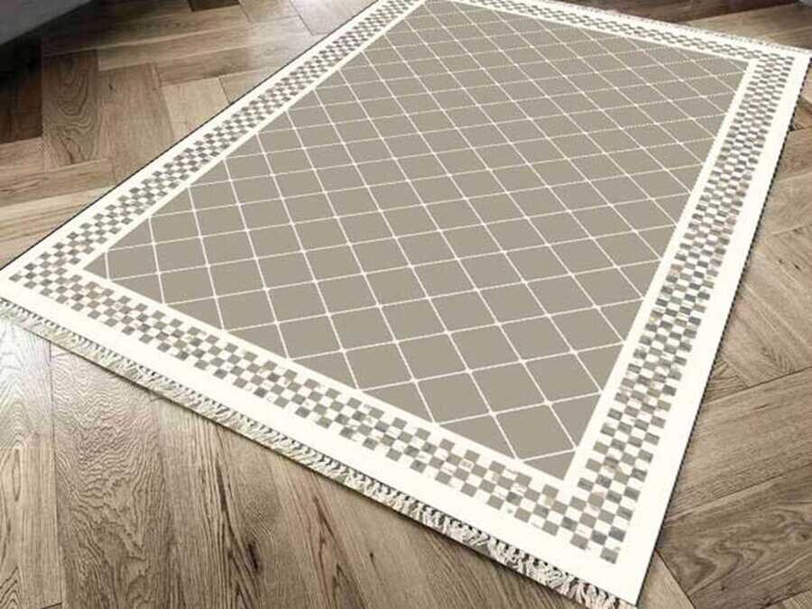 Non-Slip Base Digital Print Velvet Carpet Dama Cappuccino 80x150 cm