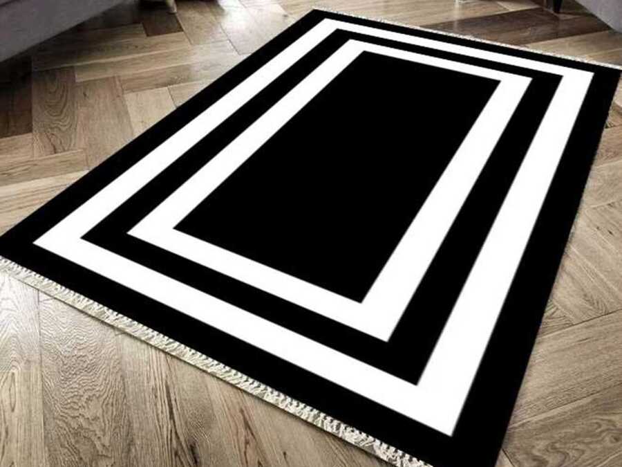 Non-Slip Base Digital Print Velvet Carpet Geometric Black 80x300 cm