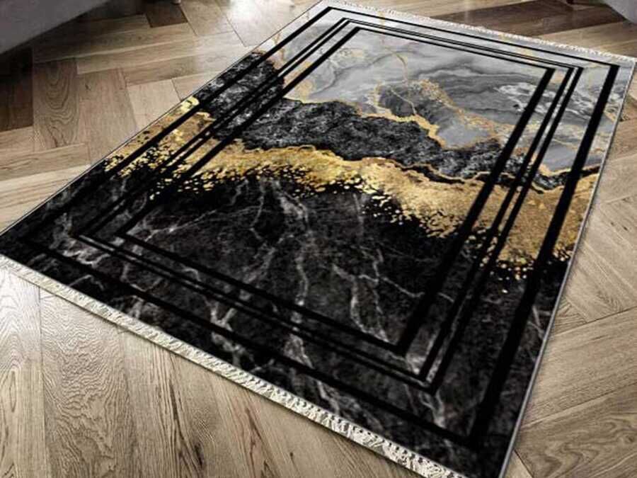 Non-Slip Base Digital Print Velvet Carpet Lava Life Black Gold 80x150 cm