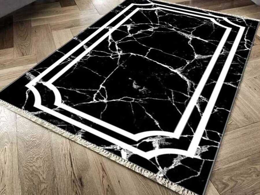 Non-Slip Base Digital Print Velvet Carpet Linear Stone Black 80x150 cm