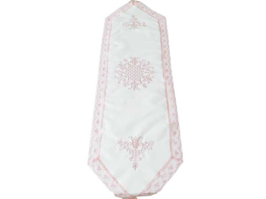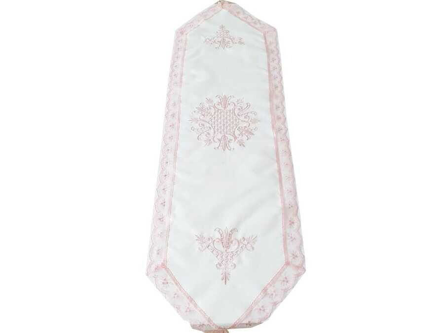 Product Information: Tulip Embroidery Embroidered Guipure Runner. Made of Stain and Dirt-resistant Fabric. A Stylish Design Has Been Created by Sewing Lace around the Runner. Width: 40cm Length: 160cm
