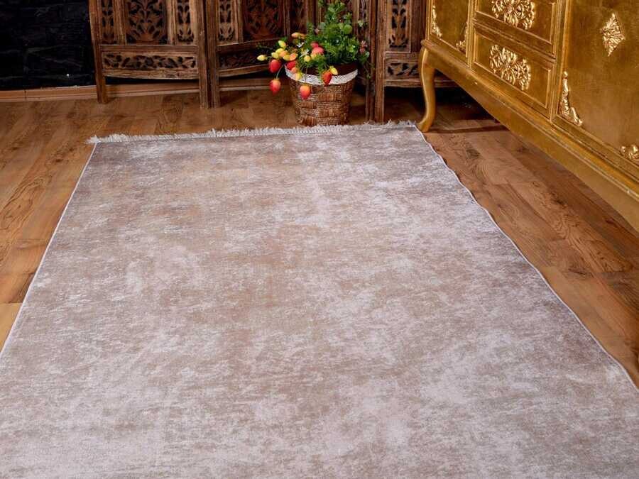 Latex Non-Slip Base Digital Print Velvet Carpet Duru Cream 80x300 cm