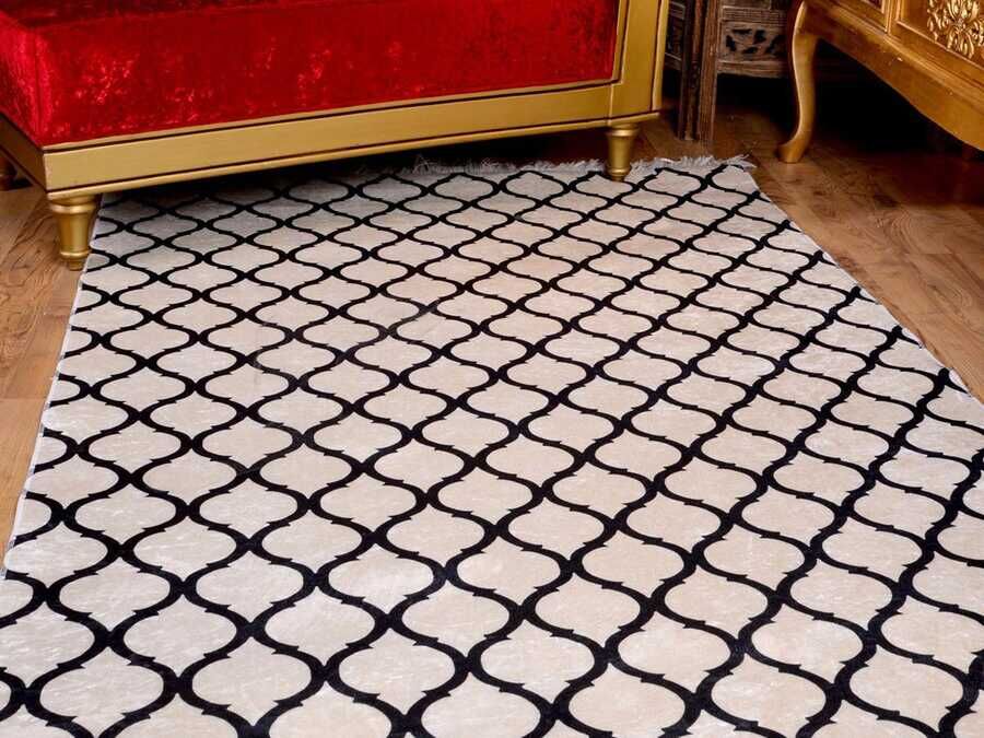 Latex Non-Slip Base Digital Print Velvet Carpet Kupa White-Black 100x300 cm