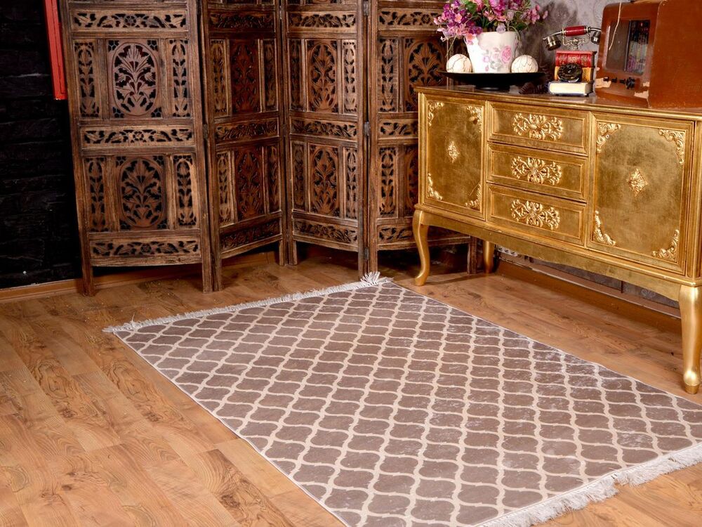 Kupa Latex Non-Slip Base Digital Print Velvet Carpet Camel-White 80x150 cm