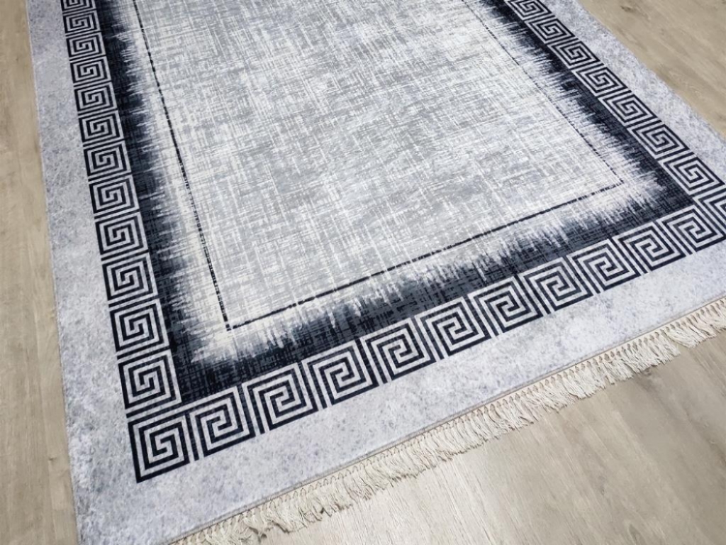 Nora Latex Non-Slip Base Digital Print Velvet Carpet Grey-White 80x150 cm