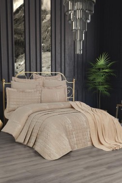 Lidya Wedding Set 10 pcs, Bedspread, Sheet, Blanket, Pillowcase Beige Color
