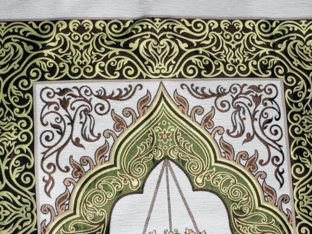The prayer rug in our product has a soft texture. It also includes a mini Quran and a rosary.