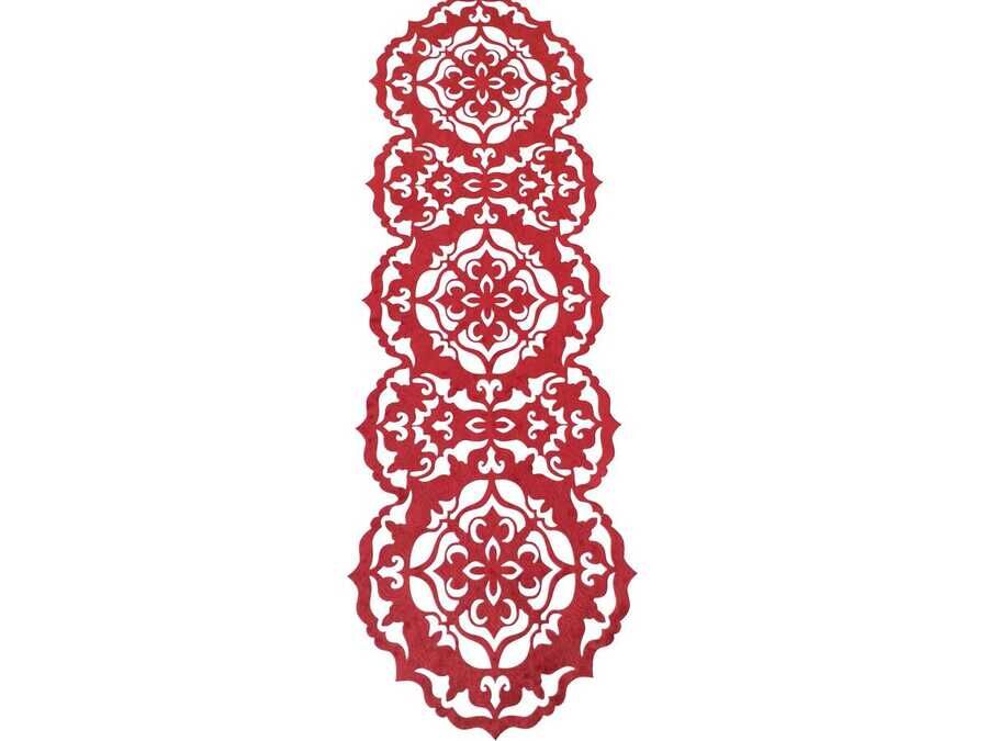 Product Information: Laser Cut Velvet Runner. Organze Velvet Fabric is on Tulle. It is customized with fine details and details laser-engraved on Velvet Fabric Width: 32cm Length: 96cm