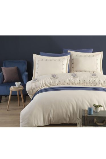 Lyra Embroidered 100% Cotton Sateen, Duvet Cover Set, Duvet Cover 200x220, Sheet 240x260, Double Size, Full Size Champagne