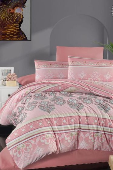 Mia Bedding Set 4 Pcs, Duvet Cover, Bed Sheet, Pillowcase, Double Size, Self Patterned, Wedding, Daily use Pink