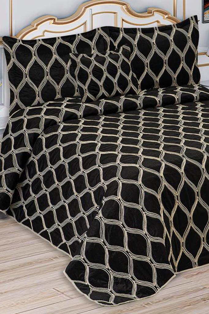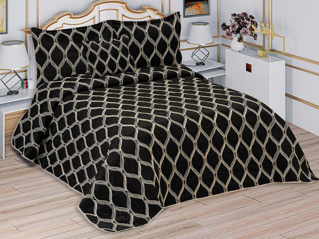 Motto Double size Bedspread Set, Coverlet 260x260 with Pillowcase Velvet Fabric, Black