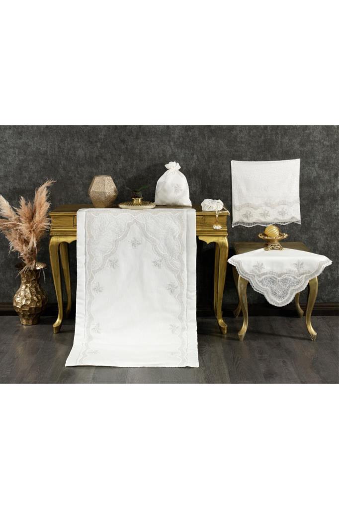 Nazli Velvet Maras Prayer Rug Set 6pcs, Rug 70x115 cm,Towel, Bundle, Cream - Cappucino