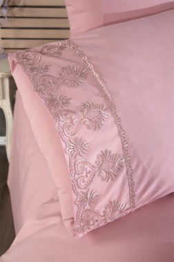 Öykü Duvet Cover Set 6pcs, Duvet Cover 200x220, Bedsheet 240x260 Cotton Fabric, Full Size, Double Size Pink