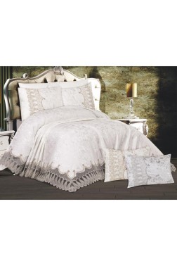 Pelin Bedding Set, Bedspread 250x260, Sheet 220x240, Chenille Fabric, Cream- Cream