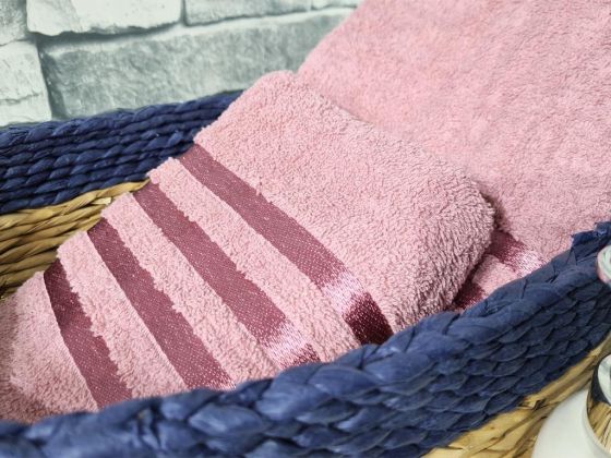 Plain Jacquard Towel Set 2pcs, 100% Cotton, Bath Towel 70x140, Hand Face Towel 50x90 Dry Rose