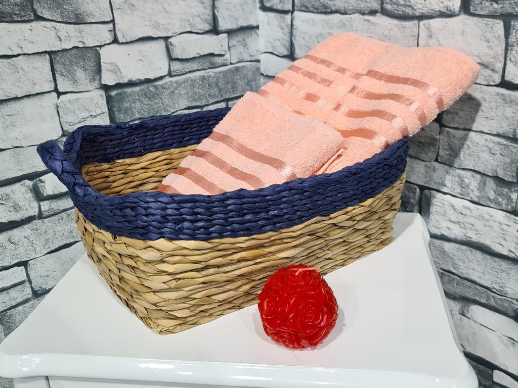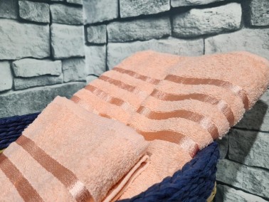 Plain Jacquard Towel Set 2pcs, 100% Cotton, Bath Towel 70x140, Hand Face Towel 50x90 Salmon