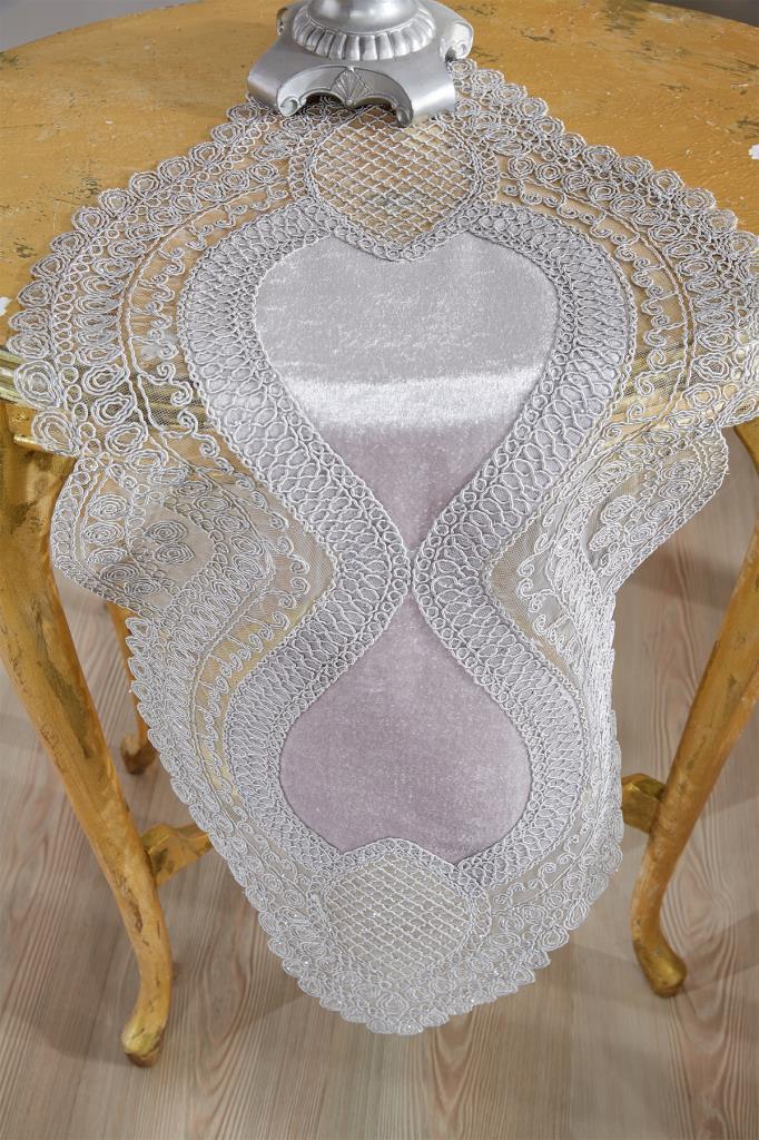 Rain Velvet Runner Set 5 Pieces For Living Room, French Lace, Wedding, Home Accessories, Gray