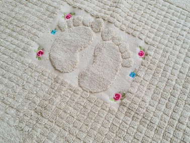 Rose Embroidered Cotton Foot Towel 50x70 cm Beige