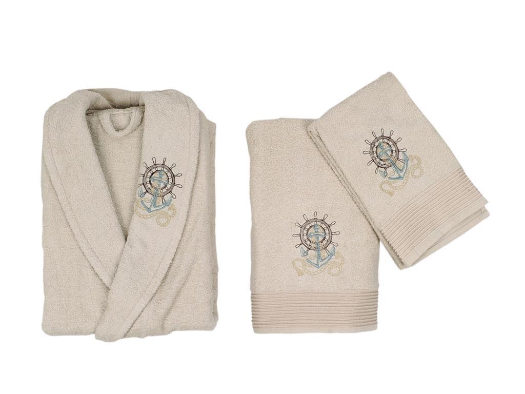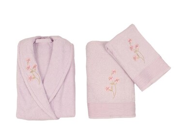 Scar Embroidered 100% Cotton 4-Piece Bathrobe Set Cappucino Lilac