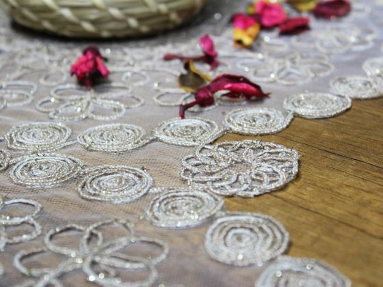 Sewing Cord on Tulle An Elegant Design Has Been Created.