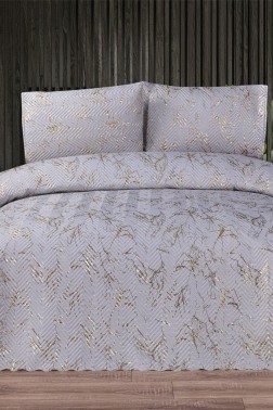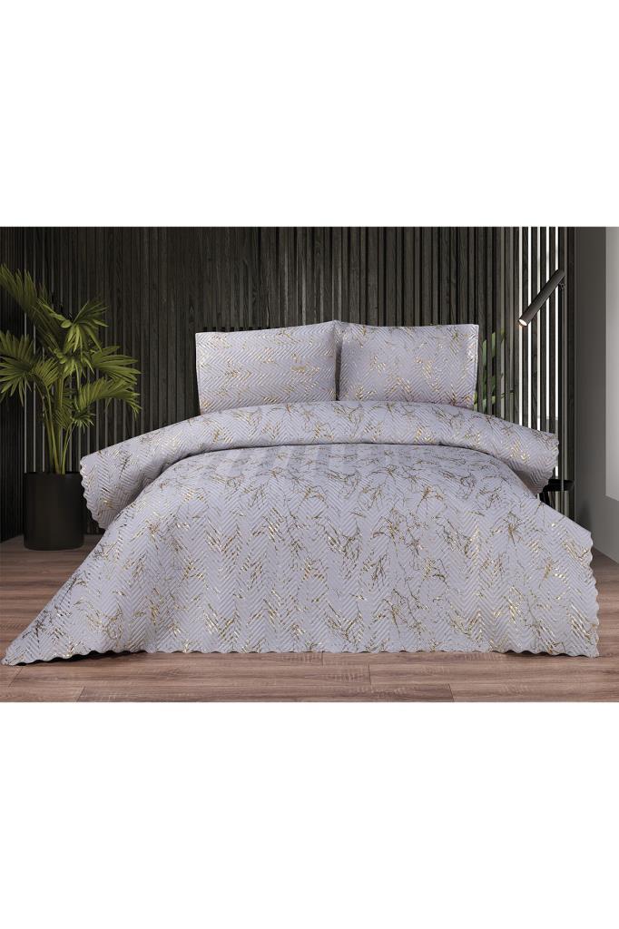 Tiana Double Size Bedspread Set, Coverlet 230x240 with Pillowcase Gray - Gold