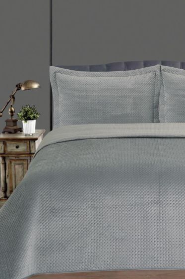 Toskana Bedspread Set, Coverlet 240x260 cm with Pillowcase, Full Size, Full Bed, Double Size, Plush Fabric Gray