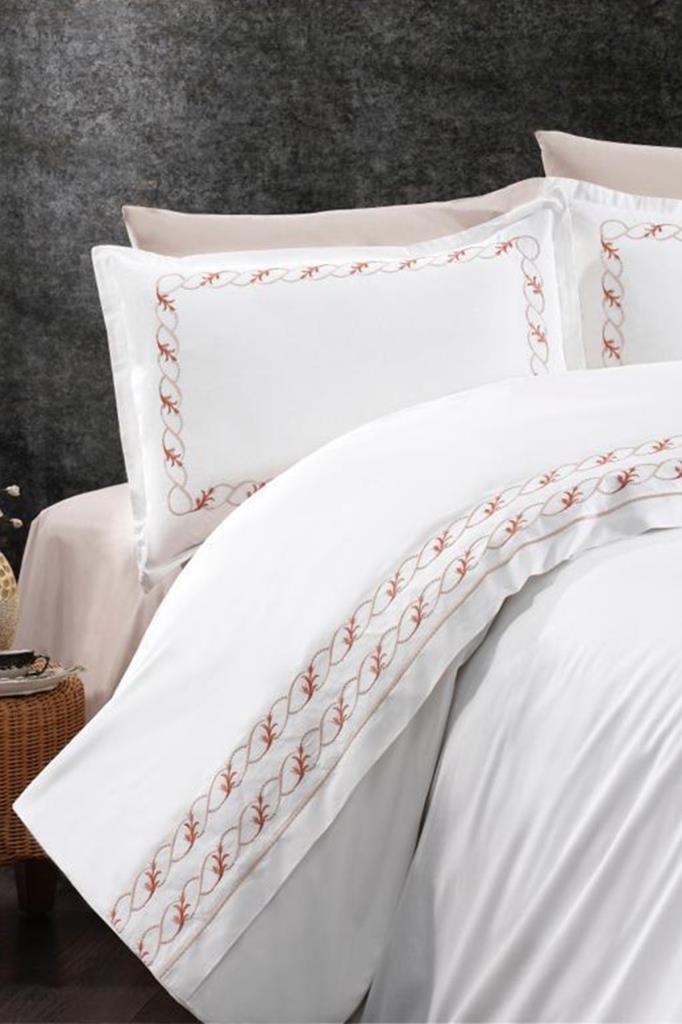 Tulip Embroidered 100% Cotton Duvet Cover Set, Duvet Cover 200x220, Sheet 240x260, Double Size, Full Size Orange