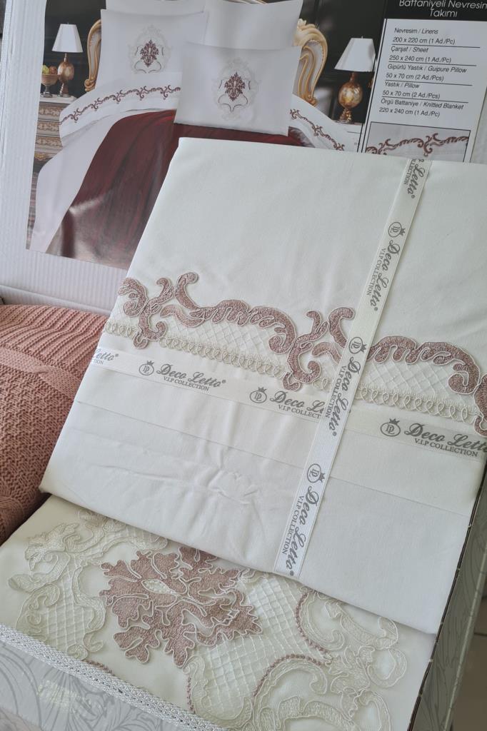 Valeria Cotton Duvet Cover Set with Blanket, Duvet Cover 200x220, Bedsheet 240x250, Blanket 220x220 Full Size, Double Cream Pink