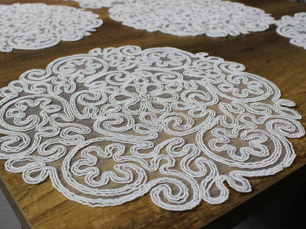 Plate Base: 37x37 cm 6 pcsA Stylish Design Was Created By Sewing Cord On Tulle.