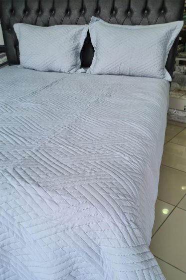 Washed Zigzag Double Size Bedding Set, Bedspread 240x260 with Pillowcase, Full Bed, Cotton-Polyester Fabric Full Bed Light Gray